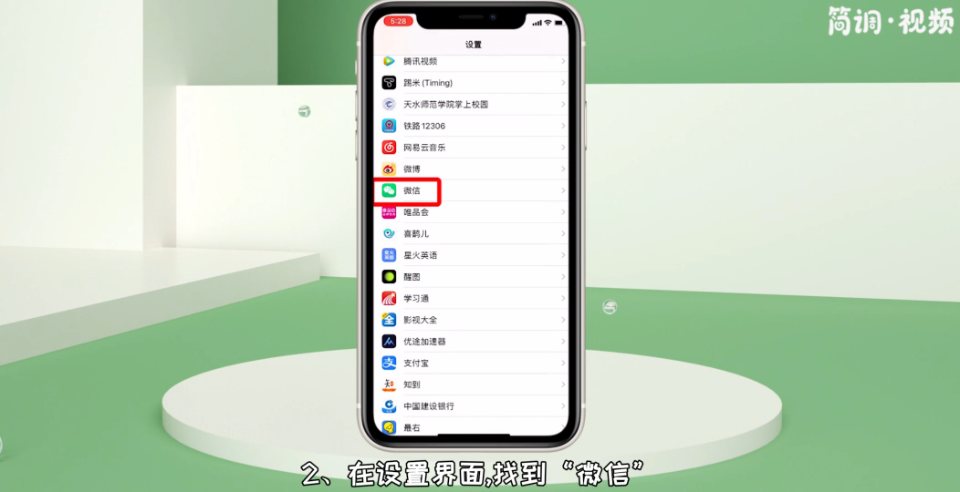 2.在设置界面,找到“微信”,点击进入;