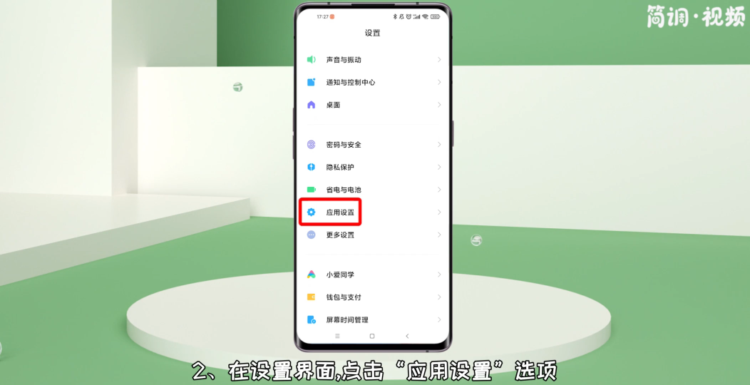 2.在设置界面,点击“应用设置”选项,点击进入“应用管理”界面;