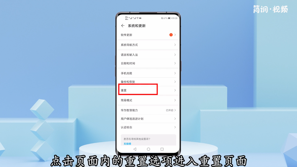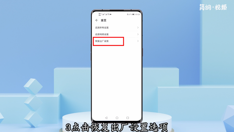 3.点击“恢复出厂设置”选项到恢复出厂设置页面,然后点击“重置手机”。