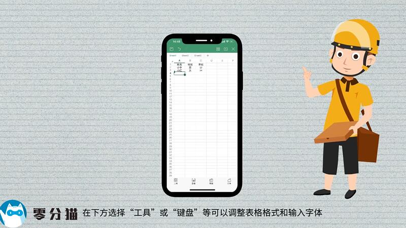 3.然后在表格中输入你需要的内容,选择底部的“工具”或“键盘”来调整表格格式和输入字体。