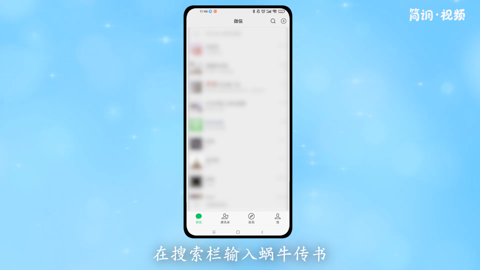 1.打开微信,在搜索栏输入“蜗牛书”,点击搜索;