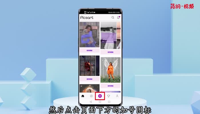 1.打开Pisart,然后点击页面底部的加号图标,点击选择照片,进入照片编辑页面;