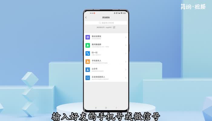 2.在弹出的列表中,点击“添加好友”,在搜索栏中输入好友的手机号或微信号,点击查找;