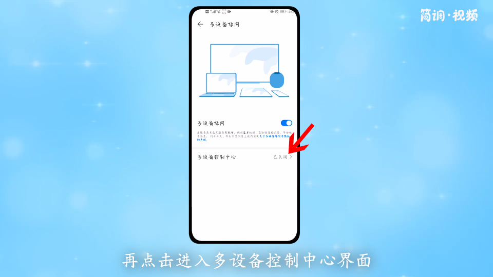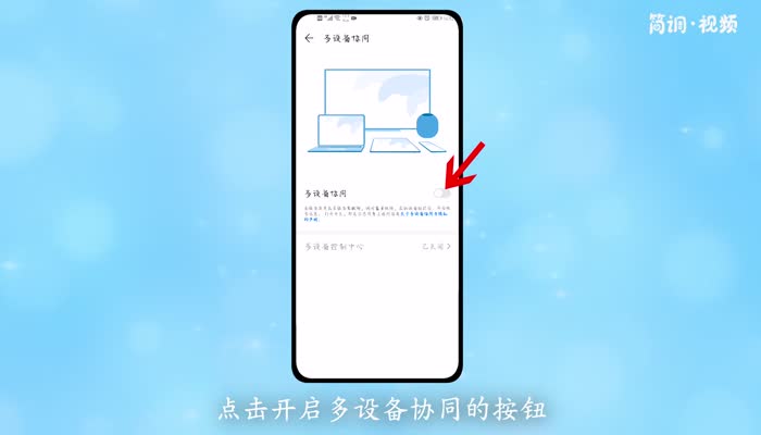 4.打开后,点击进入“多设备控制中心”界面,打开“多设备控制中心”后面的按钮,即可使用控制中心。