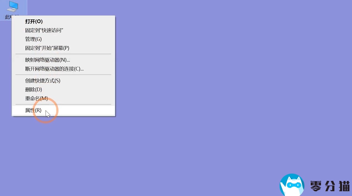 1.首先,在桌面上找到这台电脑,右键单击并选择属性。
