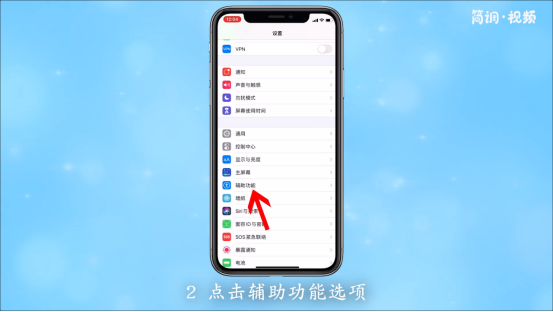 2.在辅助功能界面,点击“辅助功能”选项;