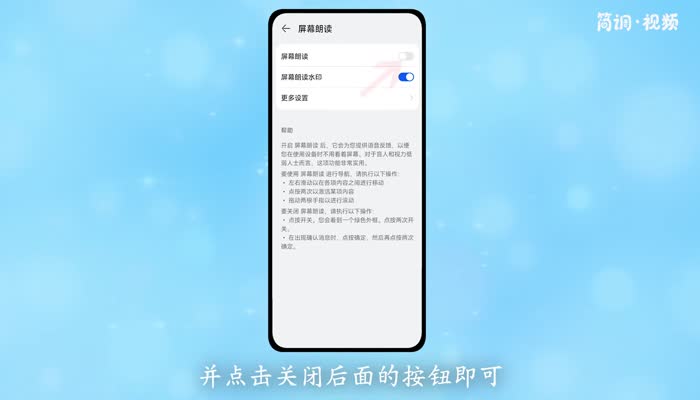 3.找到要朗读的屏幕,点击关闭后面的按钮。
