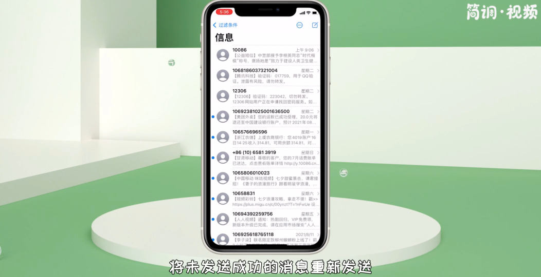 4.回到手机页面,点击进入信息界面,重新发送不成功的消息,这样就可以消除短信旁边的感叹号了。