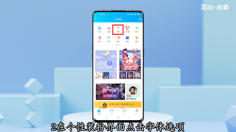 设置qq字体,可以在“个人穿衣”的“字体商城”界面设置字体。具体操作步骤如下: