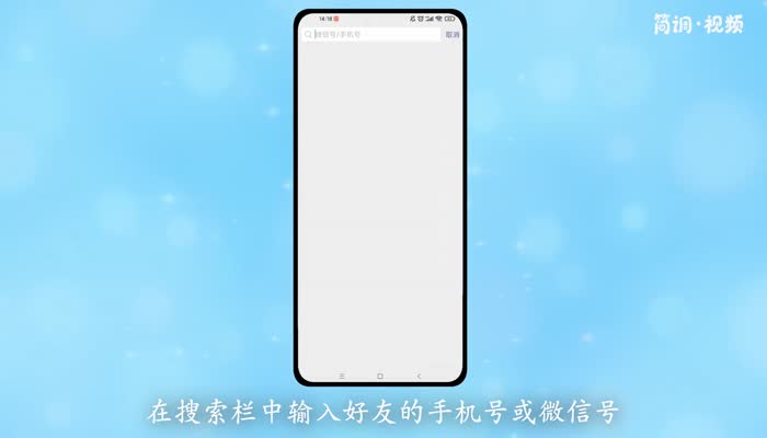 2.在弹出的列表中,点击“添加好友”,在搜索栏中输入好友的手机号或微信号,点击查找;