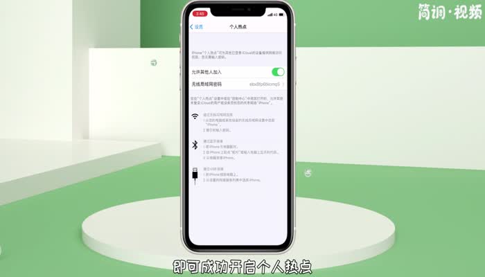 3.在个人热点界面,点击“允许他人加入”后面的按钮,成功打开个人热点,查看热点密码;