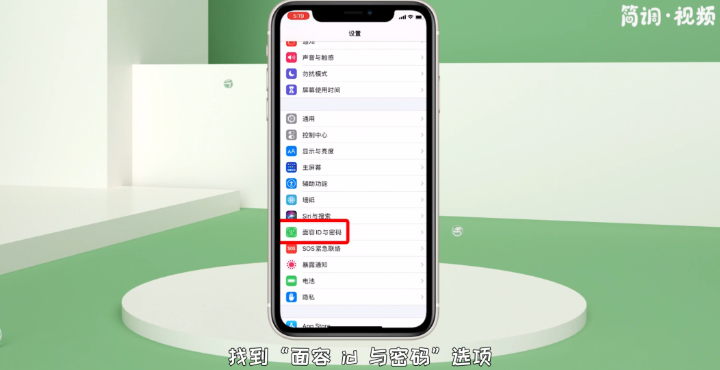 2.在设置界面,找到“Face ID和密码”选项,点击进入;