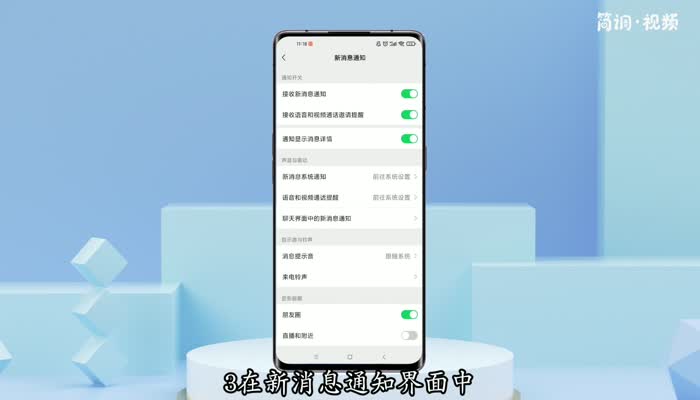 3.在新消息通知界面,找到“语音视频来电提醒”选项,点击进入;