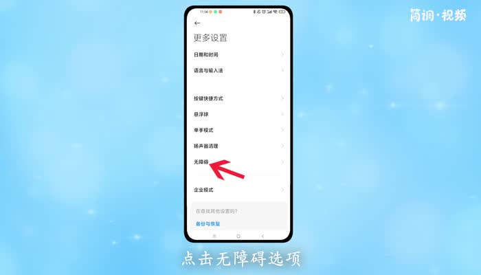3.在更多设置界面,点击“可访问”选项,切换到“可视化”界面;