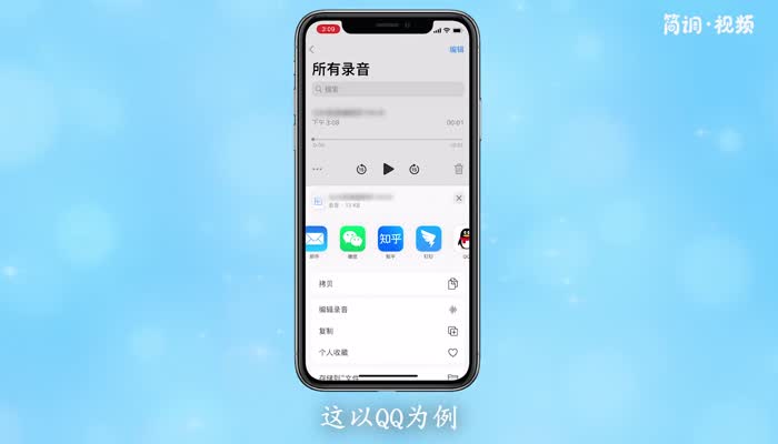 如果想导出苹果手机的录音,可以选择用QQ、微信等软件分享。具体操作步骤如下: