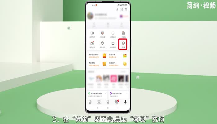 2.在“我的”界面,点击“客服”选项,进入客服界面;