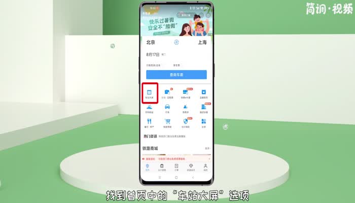 1.打开铁路12306,在首页找到“车站大屏”选项,点击进入车站大屏页面;