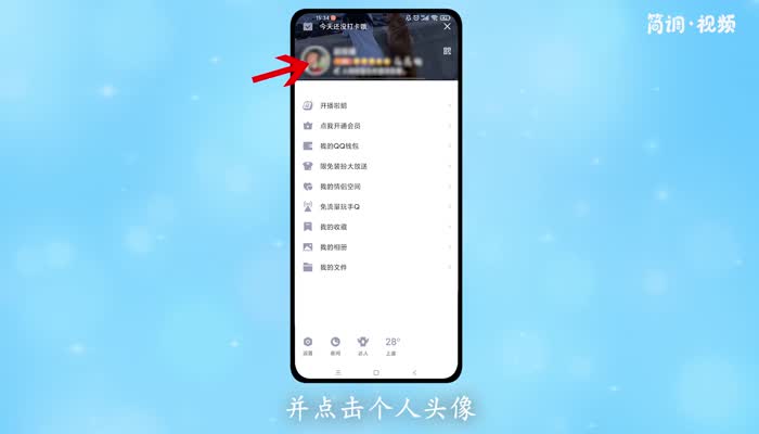 1.进入手机qq,在首页向右滑动屏幕,点击个人头像;