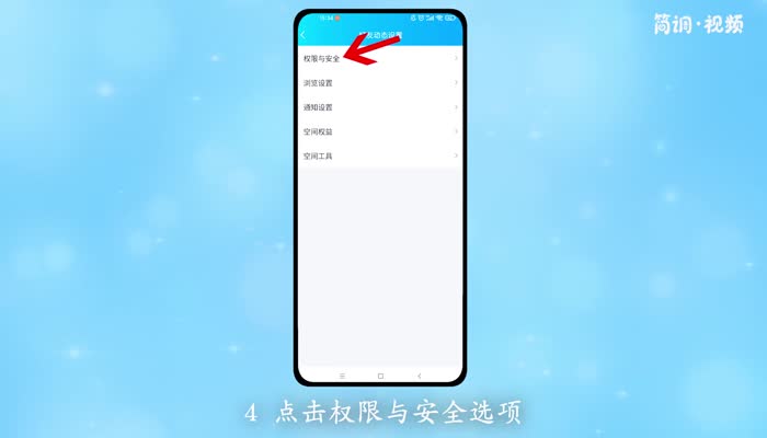 4.点击“权限和安全性”选项,点击“谁可以查看我的空间”;