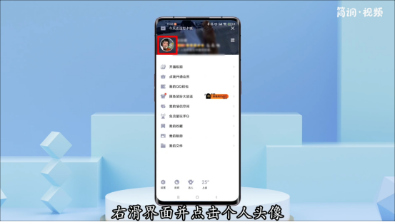 1.打开手机qq,向右滑动界面,点击个人头像;