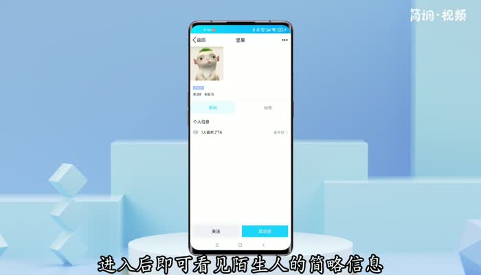 4.进入后,可以看到陌生人的简要信息。点击“关注”或“发送消息”即可。