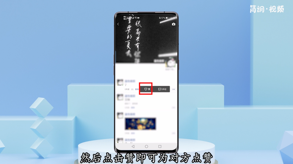 3.点击朋友圈右下方的两个圆点符号,然后点击“喜欢”来喜欢对方;