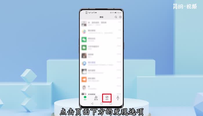 1.打开微信,点击页面下方的“发现”选项,进入发现页面;