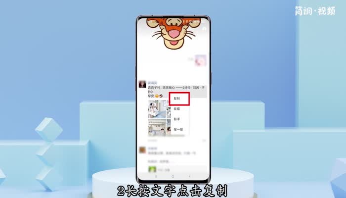 2.长按文字点击复制,然后点击进入图片界面。长按后,点击保存图片,将图片保存到手机相册中;