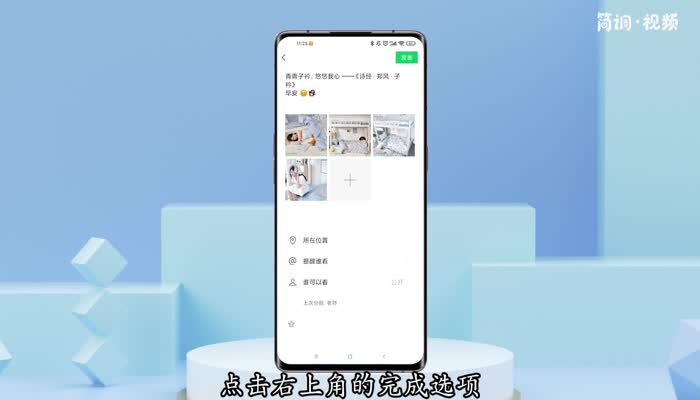 5.在发布界面,设置其他参数,点击右上角的“完成”选项,成功发布到朋友圈。