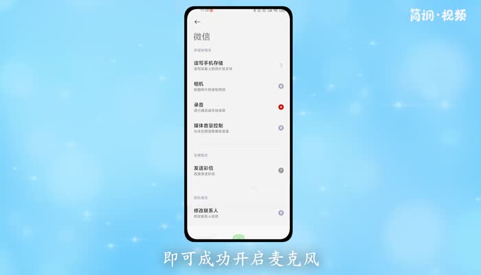 微信的语音麦克风开启,是指语音通话过程中开启麦克风,或者在手机系统中开启麦克风权限,可以在手机应用的权限设置中开启。具体操作步骤如下: