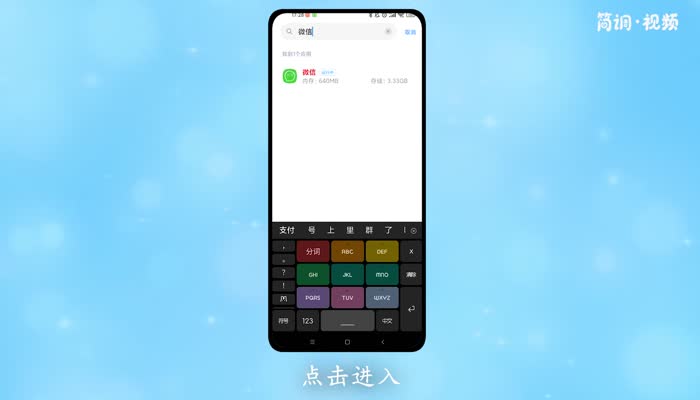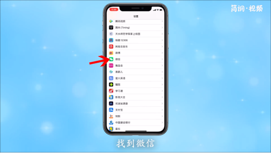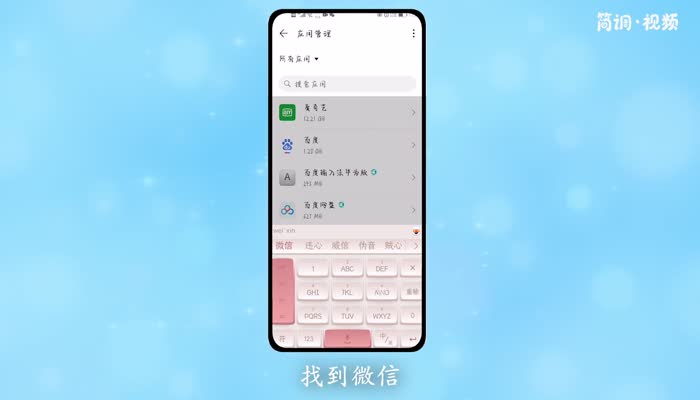 3.在应用管理中,找到“微信”,点击进入,再点击进入“权限”界面;