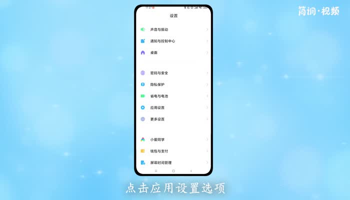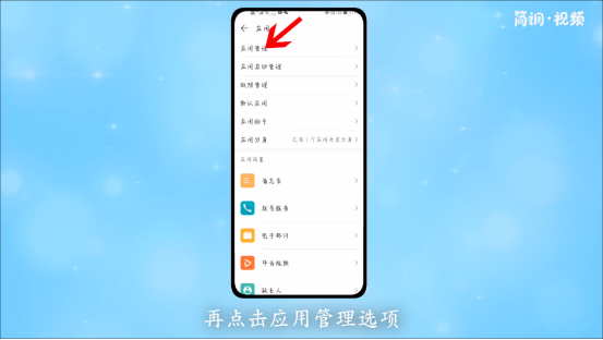 2.在设置界面,点击“应用设置”选项,点击进入“应用管理”界面;