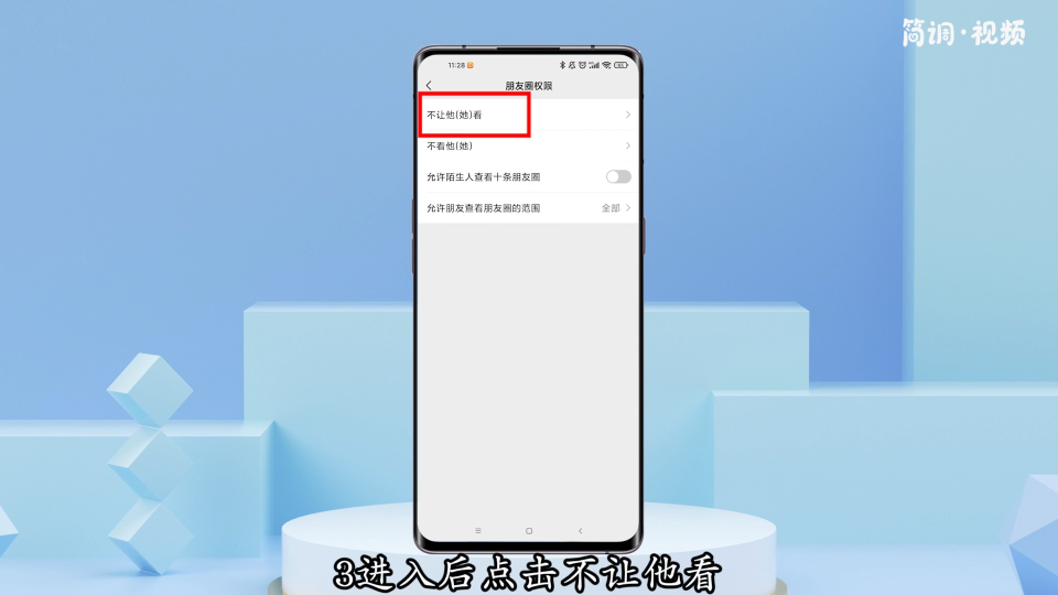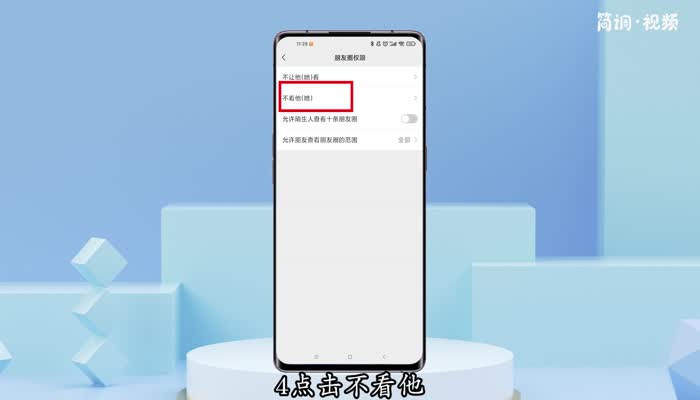 3.进入后,点击“不让他看到”,设置哪些好友不能查看自己的朋友圈;