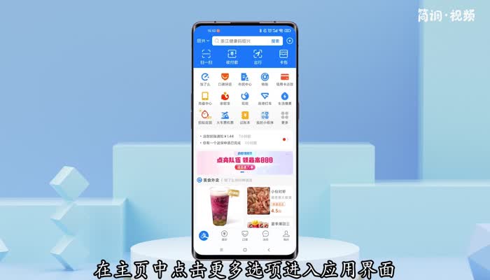 1.打开支付宝,点击首页“更多”选项,进入应用界面;