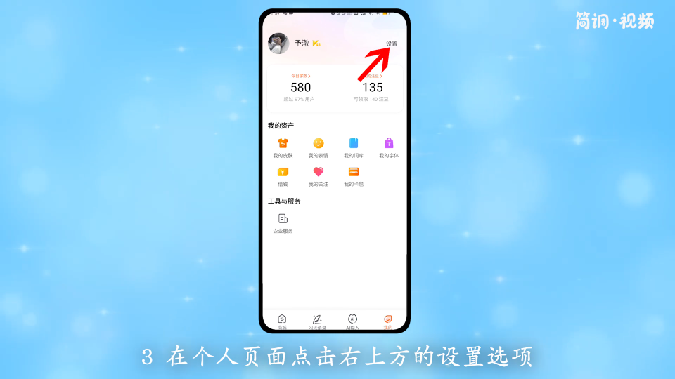 3.点击个人页面右上方的“设置”选项,进入搜狗输入法设置页面;