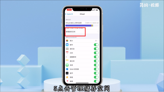 5.点按“管理储存空间”来管理iCloud储存空间。