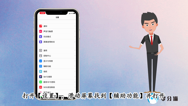 【辅助触摸】,打开【辅助触摸】,可以看到屏幕上的浮球。