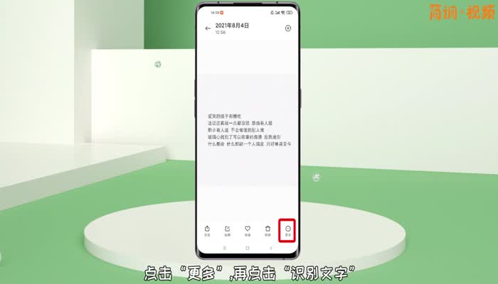 先把文字图片下载到相册,打开图片,点击“更多”,然后点击“识别文字”。如果识别有错误,可以自己修改;