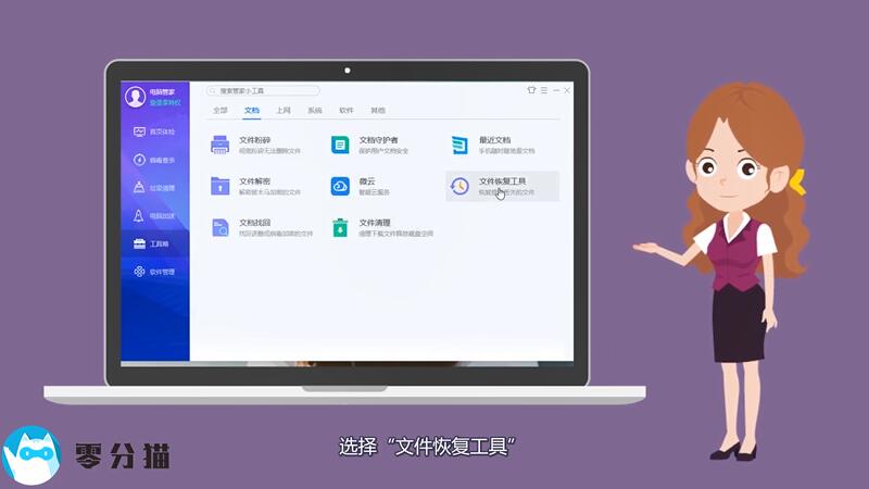 2.进入后,选择工具箱-文档,选择文件恢复工具。