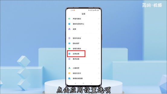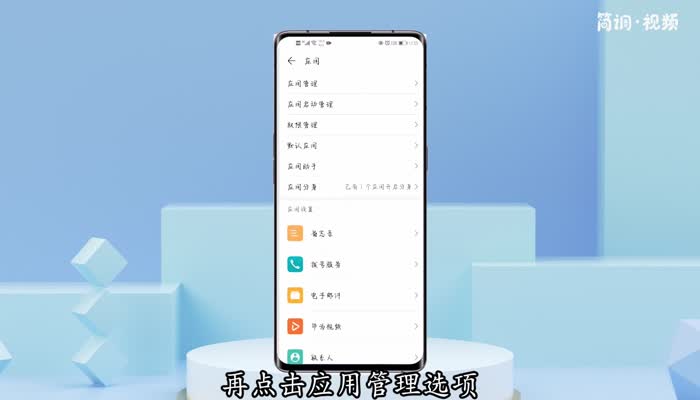 2.在设置界面,点击“应用设置”选项,点击进入“应用管理”界面;