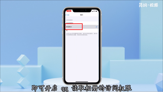 3.点击“照片”选项,勾选“所有照片”,打开qq的访问权限,即可阅读相册。