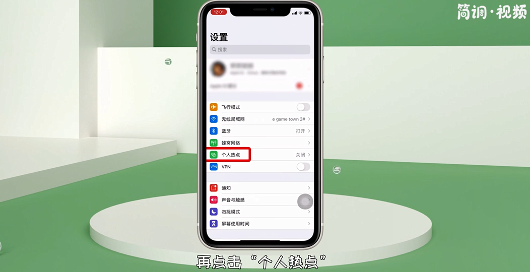 打开手机,点击"设置",再点击"个人热点",进入个人热点设置界面;