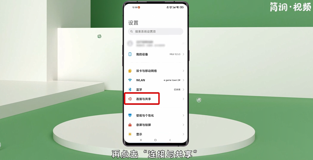 打开手机,点击"设置",再点击"连接与共享",进入"个人热点"设置;