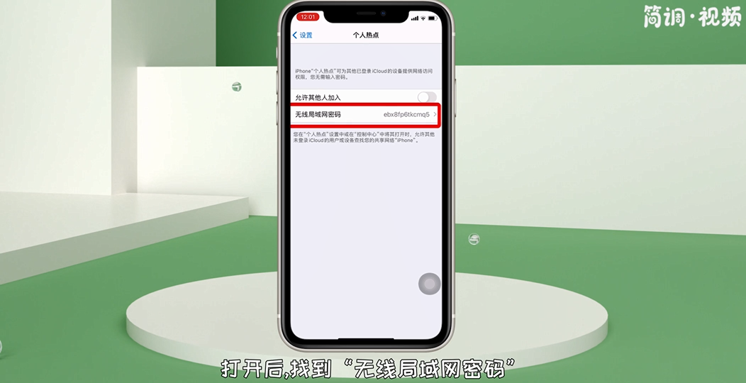 热点密码在"个人热点设置"中可以看,具体操作步骤如下: