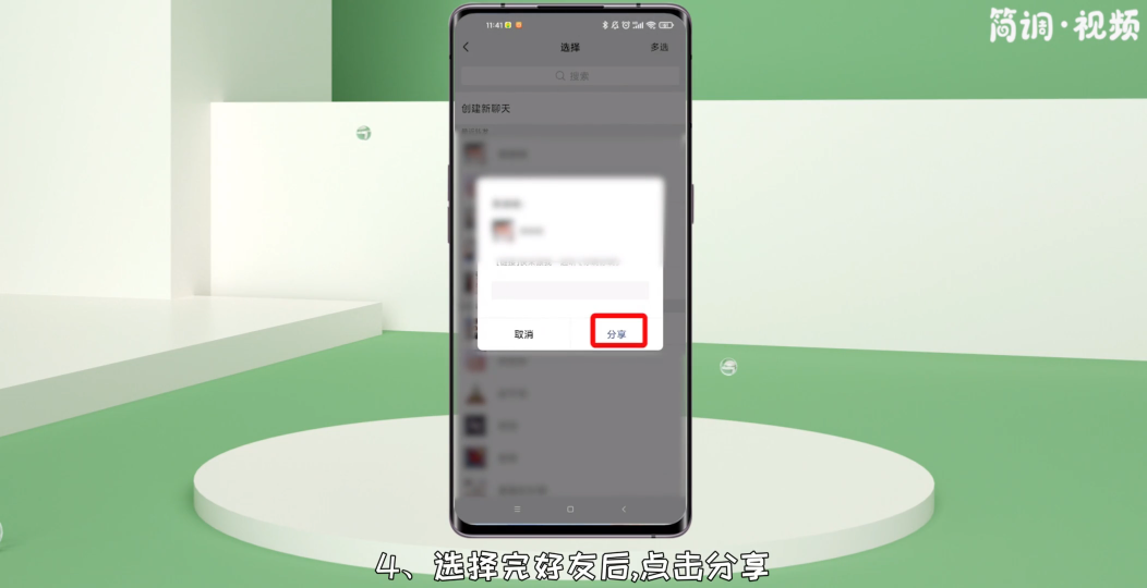 4.选择好友后,点击分享,好友加入后可以一起听歌。