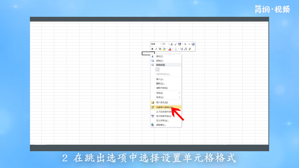 2.在弹出的选项中选择“设置单元格格式”;