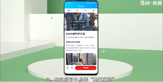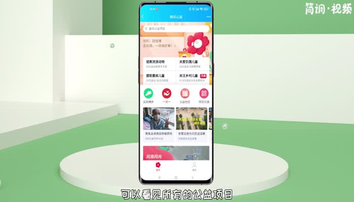 3.在“腾讯公益”页面,可以看到所有的公益项目。选择一个项目,点击进入;
