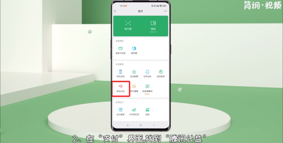 2.在“支付”界面,找到“腾讯公益”,点击进入;