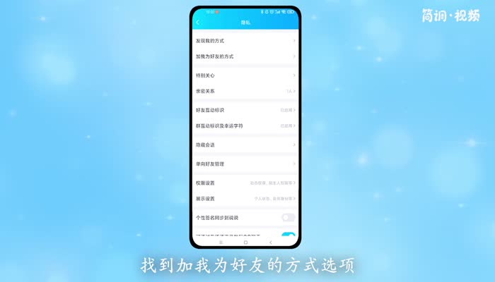 如果qq设置了“不加我为好友”,好友无法发送验证申请,会显示“添加失败”。可以在“隐私”界面打开“不要加我为好友”。具体操作步骤如下: