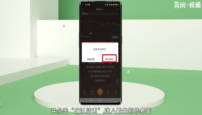 2.k歌结束后,点击旁边的“完成”选项,点击“确认结束”进入歌曲制作界面;